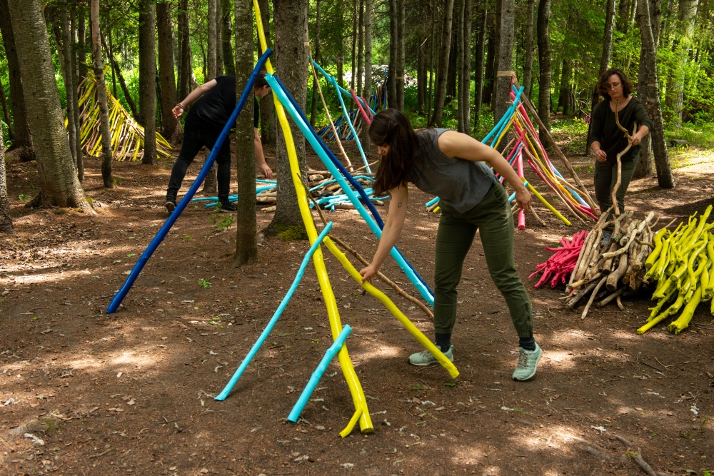 Assemble is a participatory, adaptable sculpture that takes inspiration from outdoor education and fort building. The project was installed at the Jardin de Métis International Garden Festival in (Reford Gardens) in summer 2018, and was a collaboration with designer Craig van Ravens
